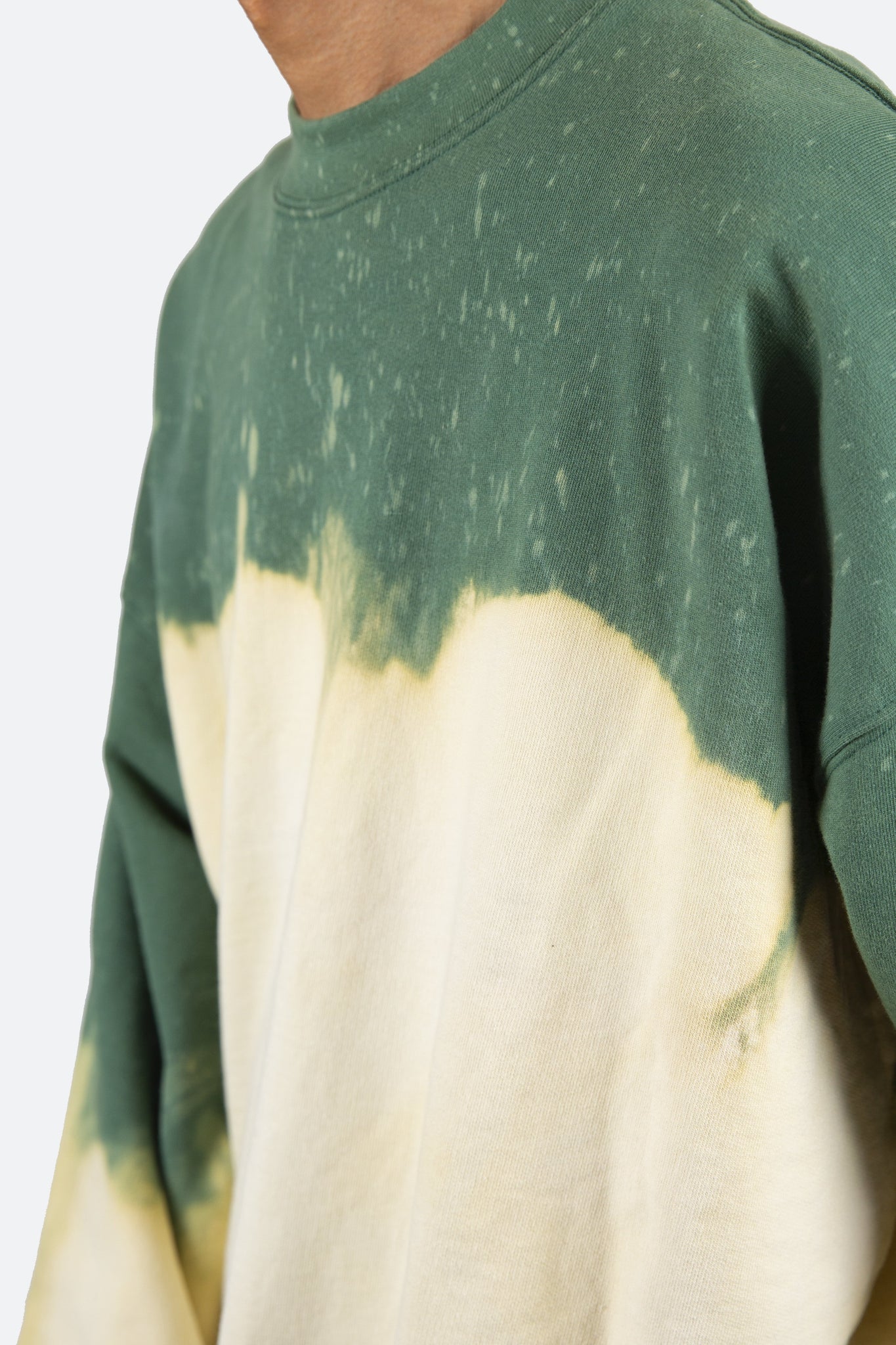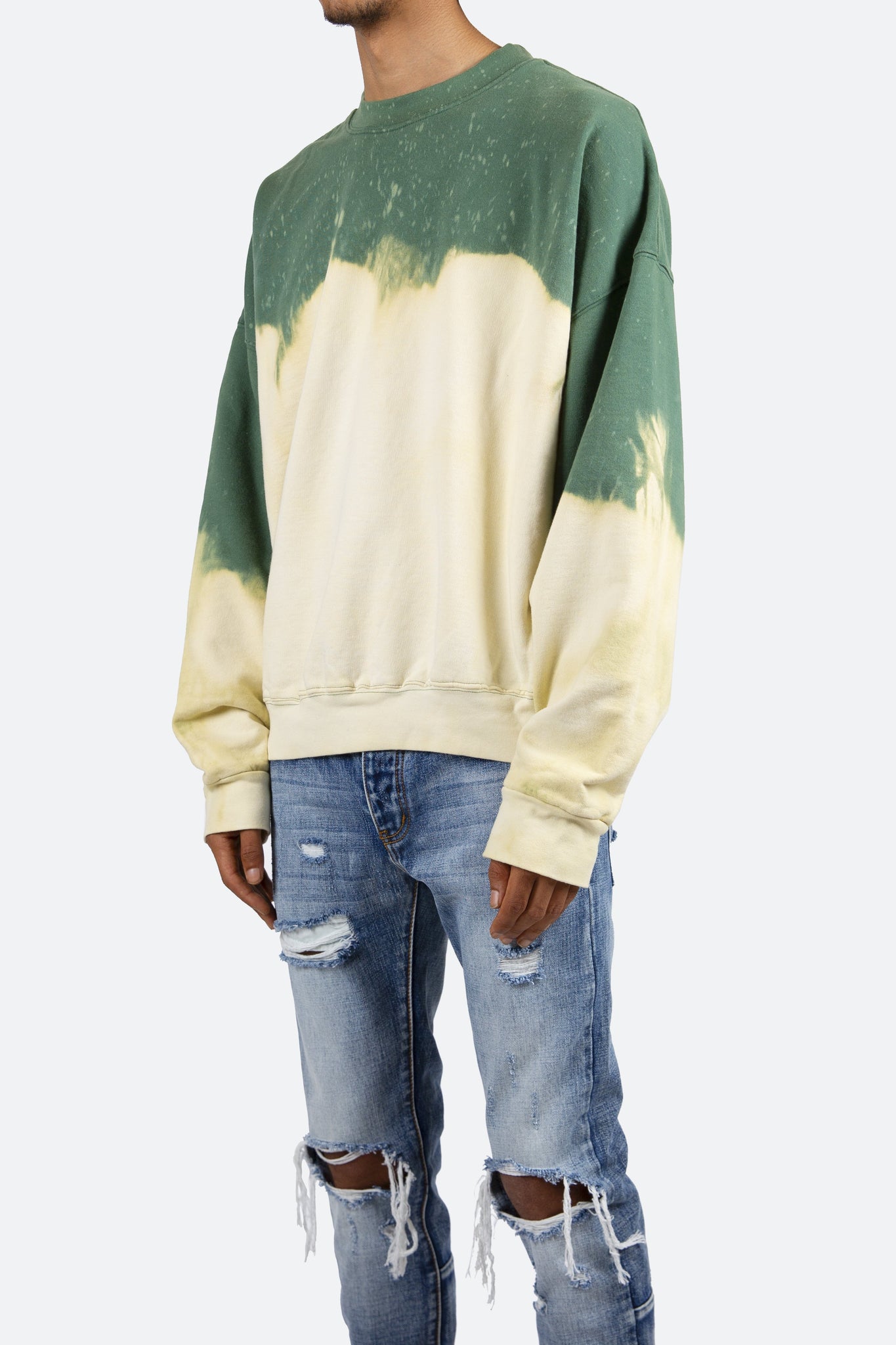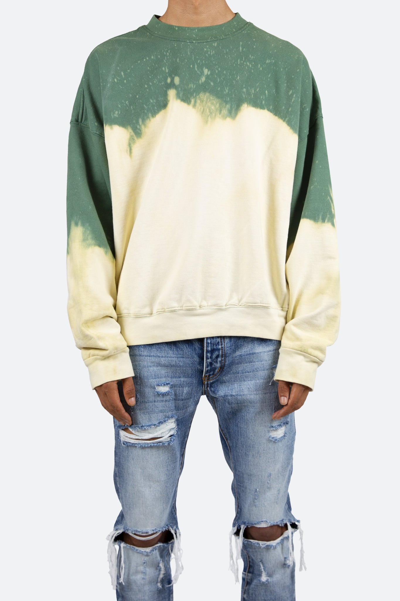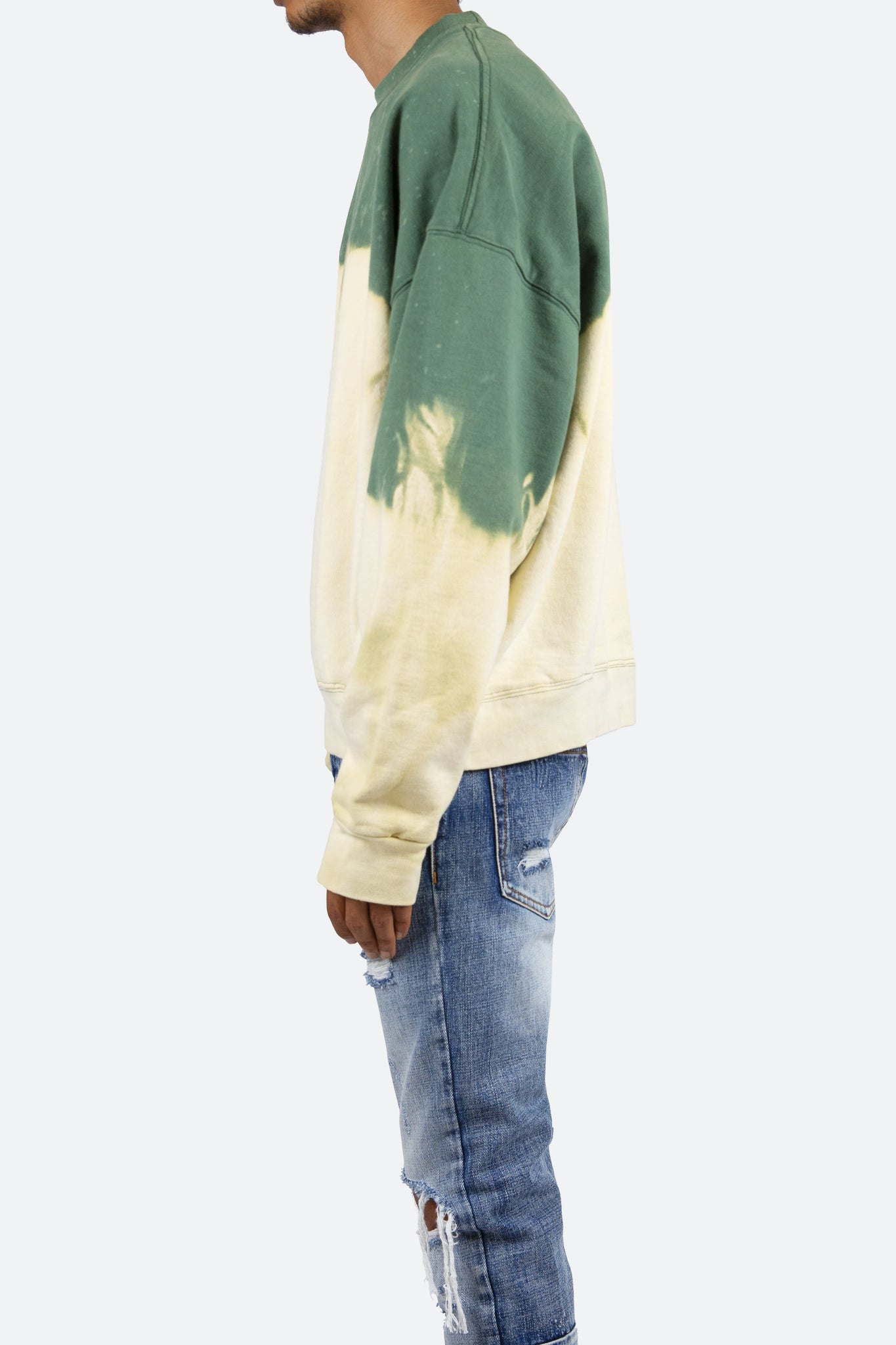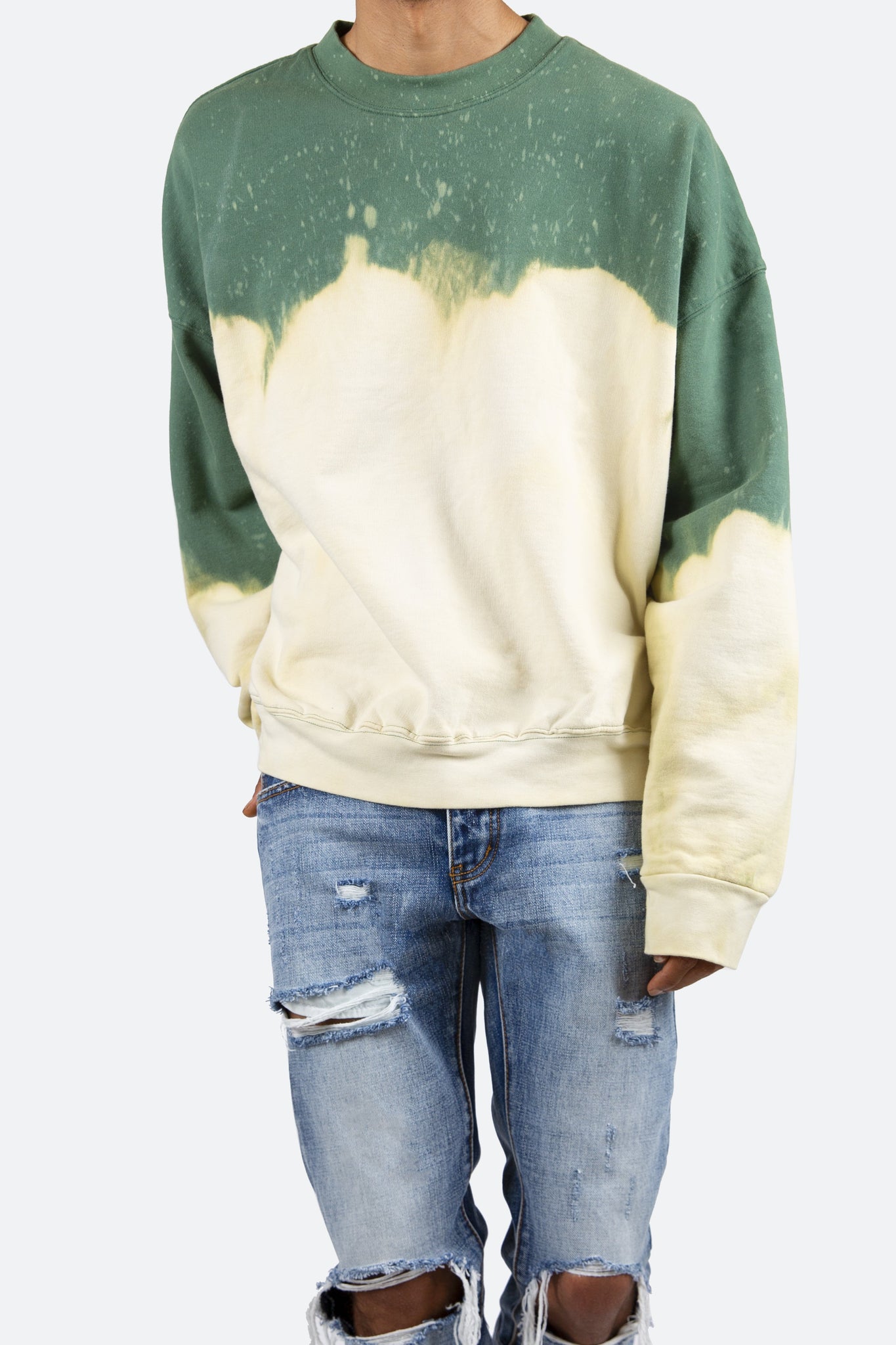 the Bleached Crewneck is made from 100% cotton french terry, featuring ribbing at the wrist and collar and hem, bleaching on the lower half of the garment, and finished in an oversized fit with a dropped shoulder design.