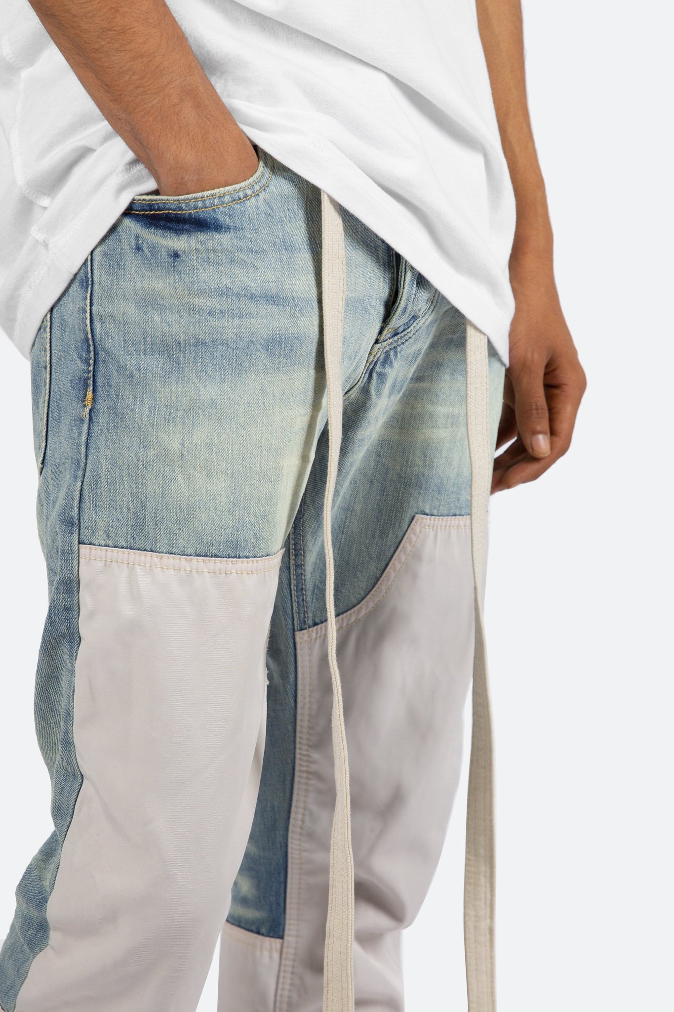 the D187 Western Denim is designed with our new short-inseam D fit which is relaxed throughout, featuring contrasting nylon western panels on the front and back, and finished with a cotton canvas belt.