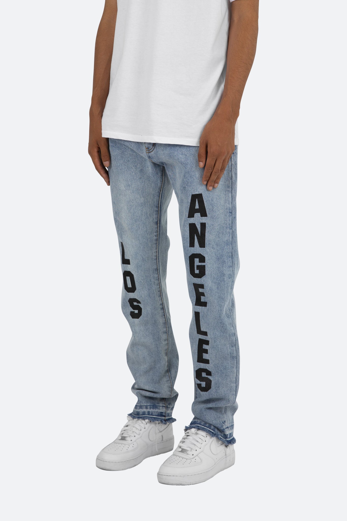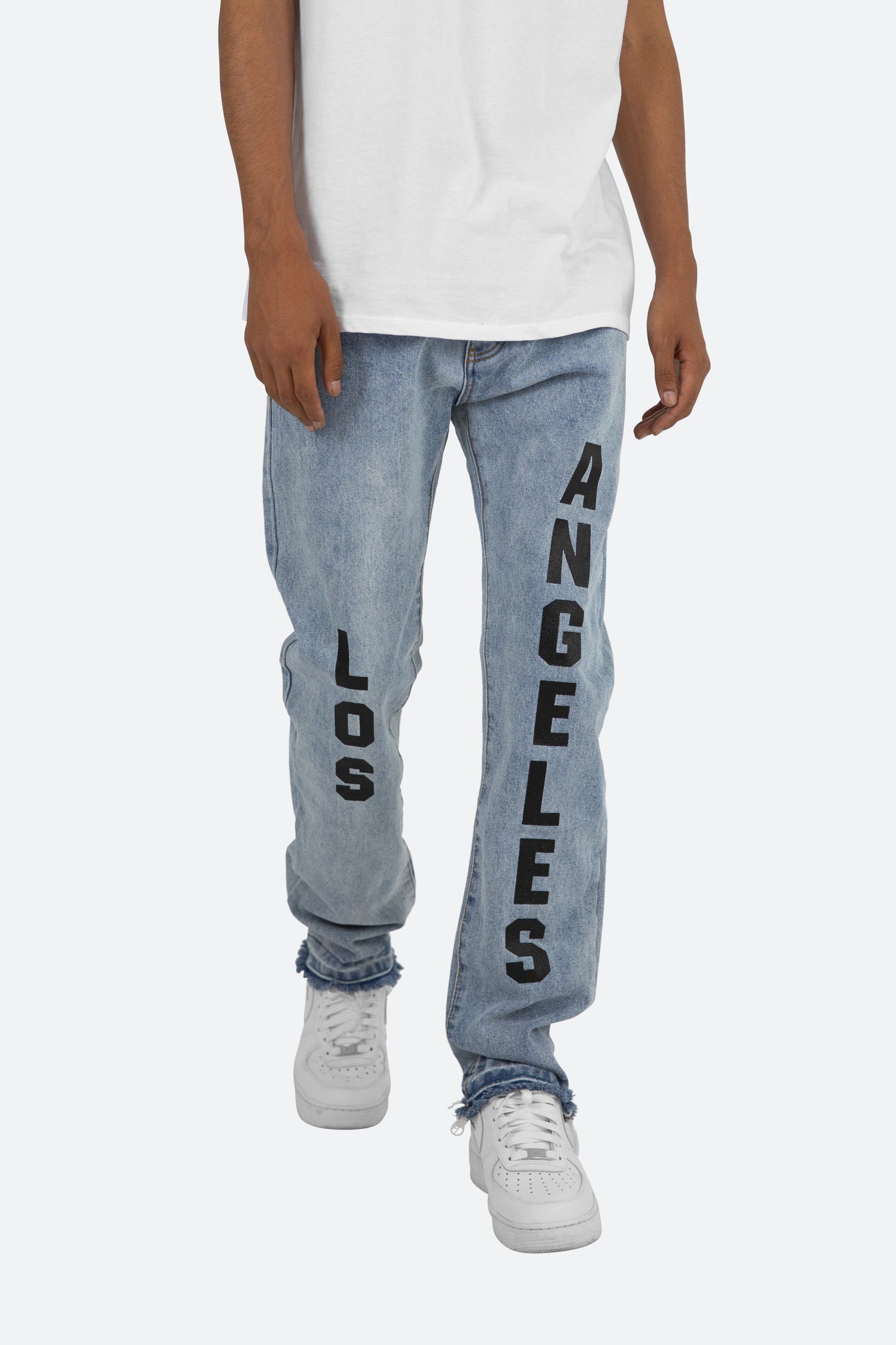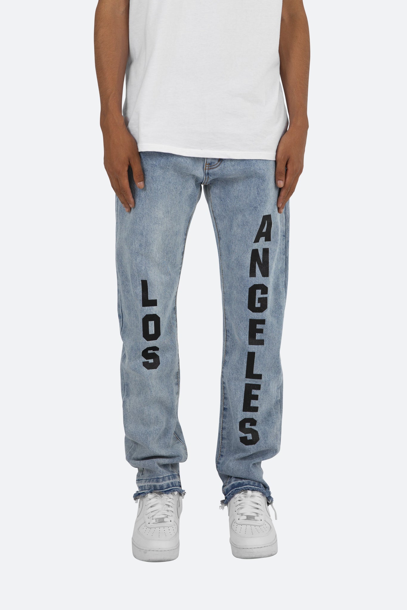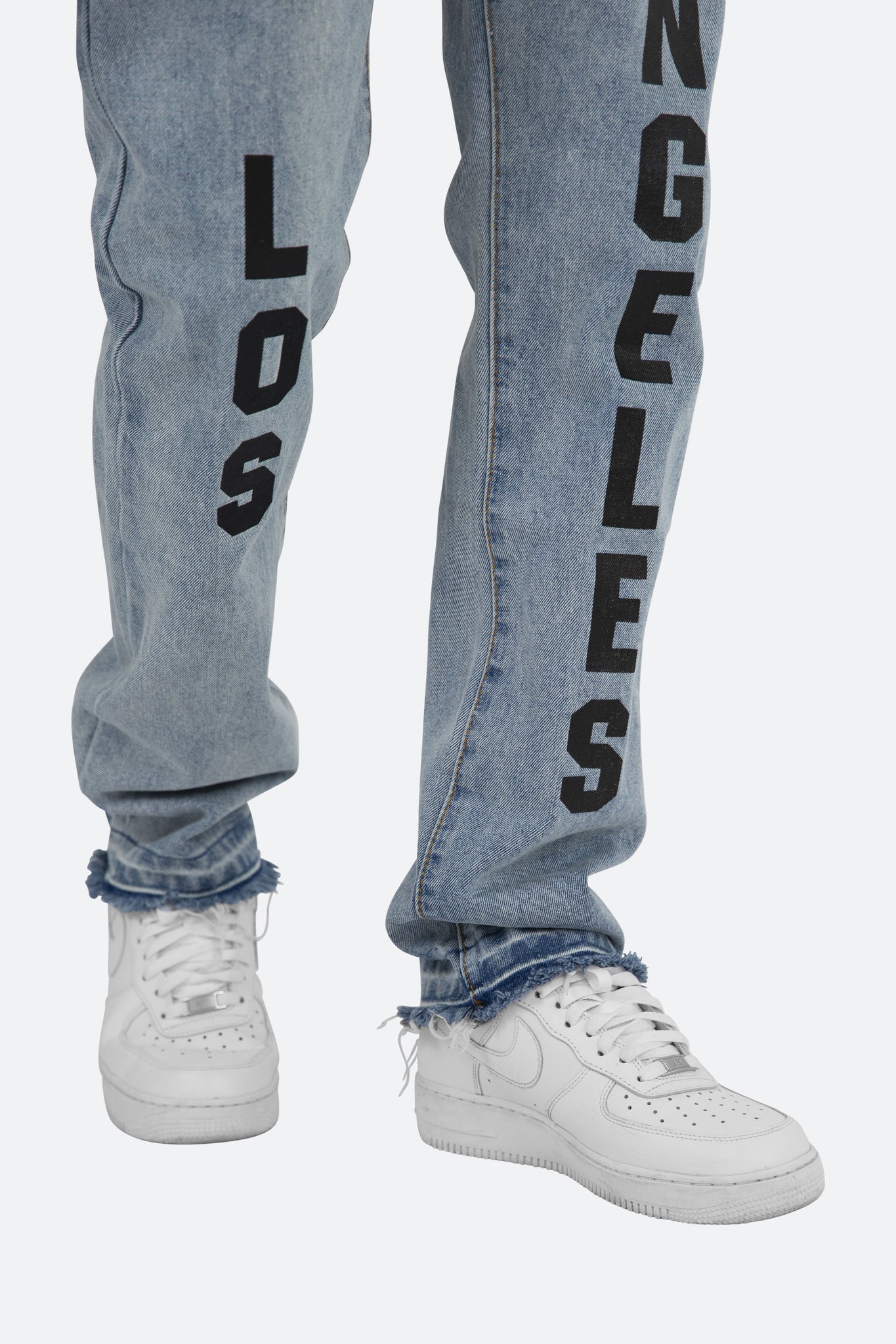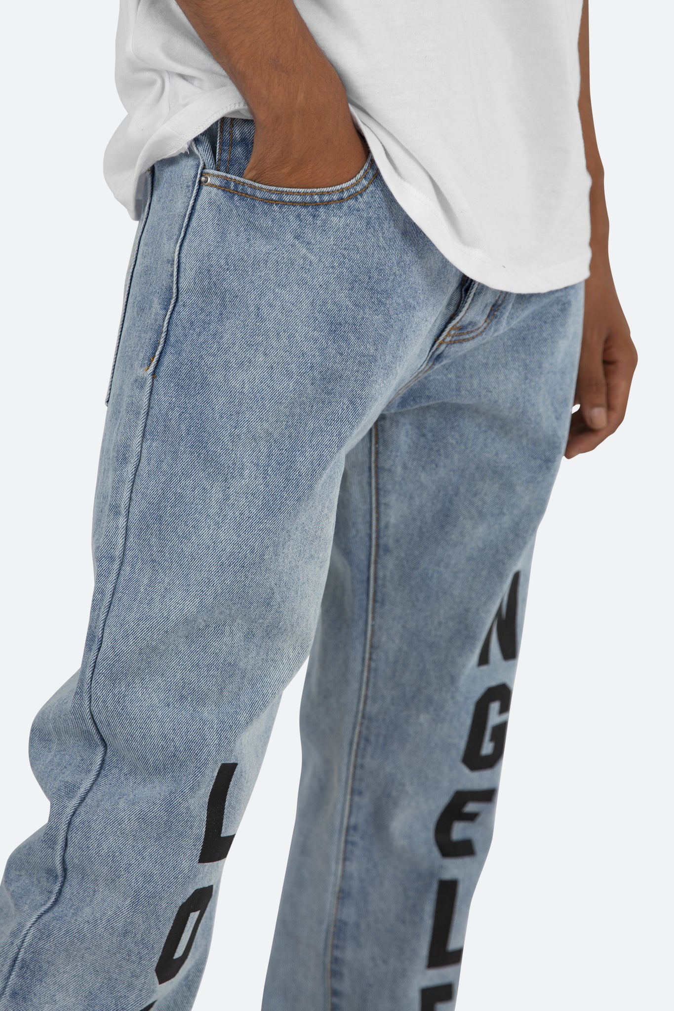 the D201 Denim is designed with our new D fit which is relaxed throughout with an extended inseam for stacking and features light wash and finished with a "Los Angeles" screen print.