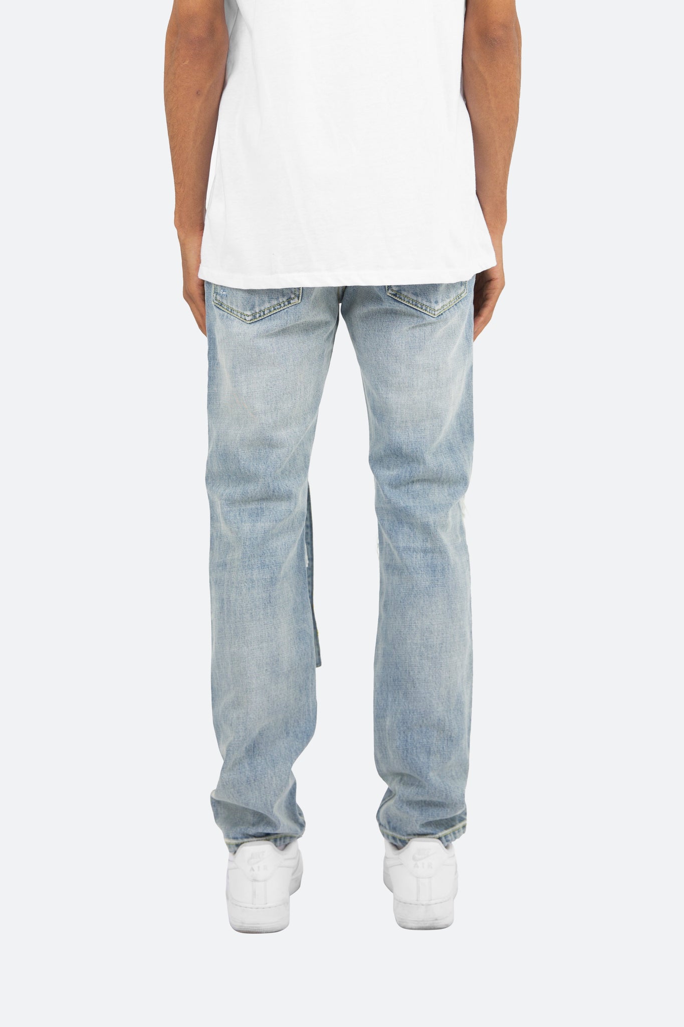 the D3 Denim is designed with our new short-inseam D fit which is relaxed throughout, featuring distress details at the knee, and finished with a self-fabric belt.