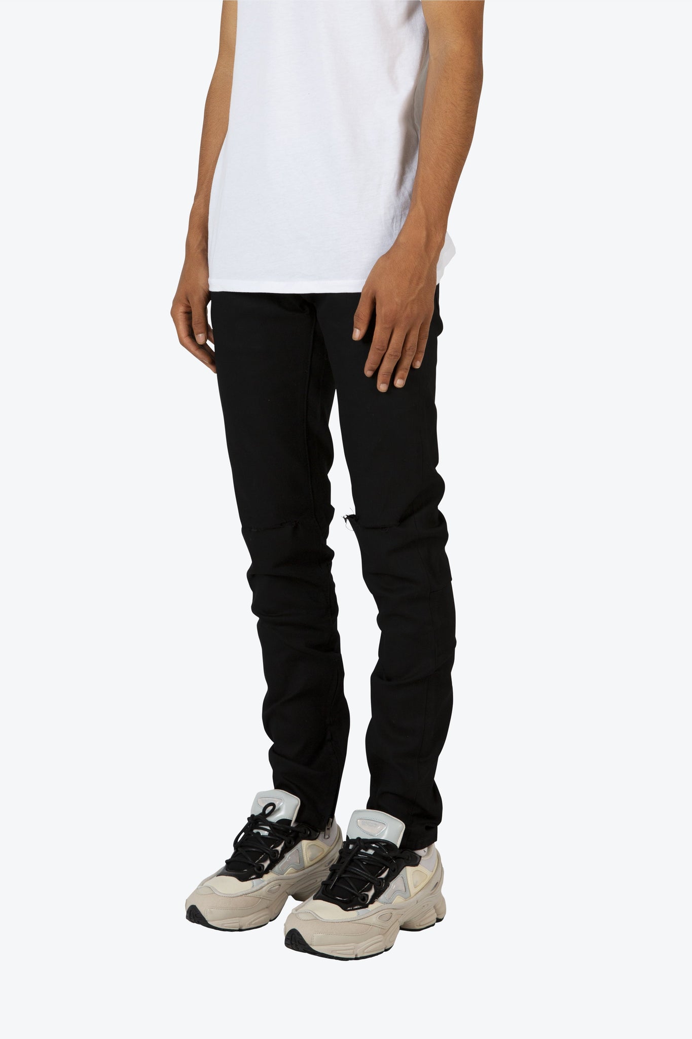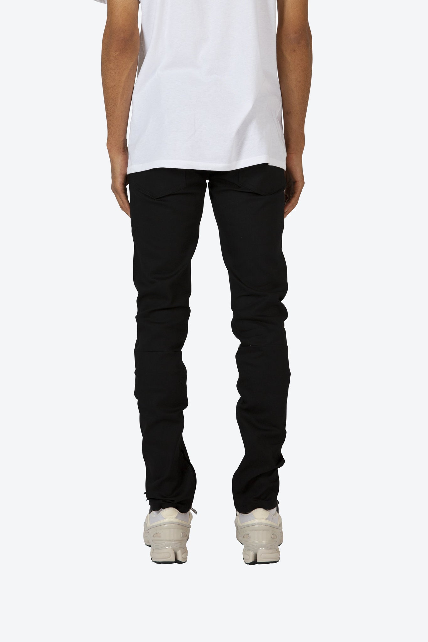 Developed in Los Angeles, the matte black M6 Stretch Denim is designed with a relaxed fit through the thigh that tapers from the knee to the ankle, with a distress detail at the knee and a warm wash throughout, finishing off with a 10" concealed zipper on the inseam and a rear calf panel for a carefully optimized fit.