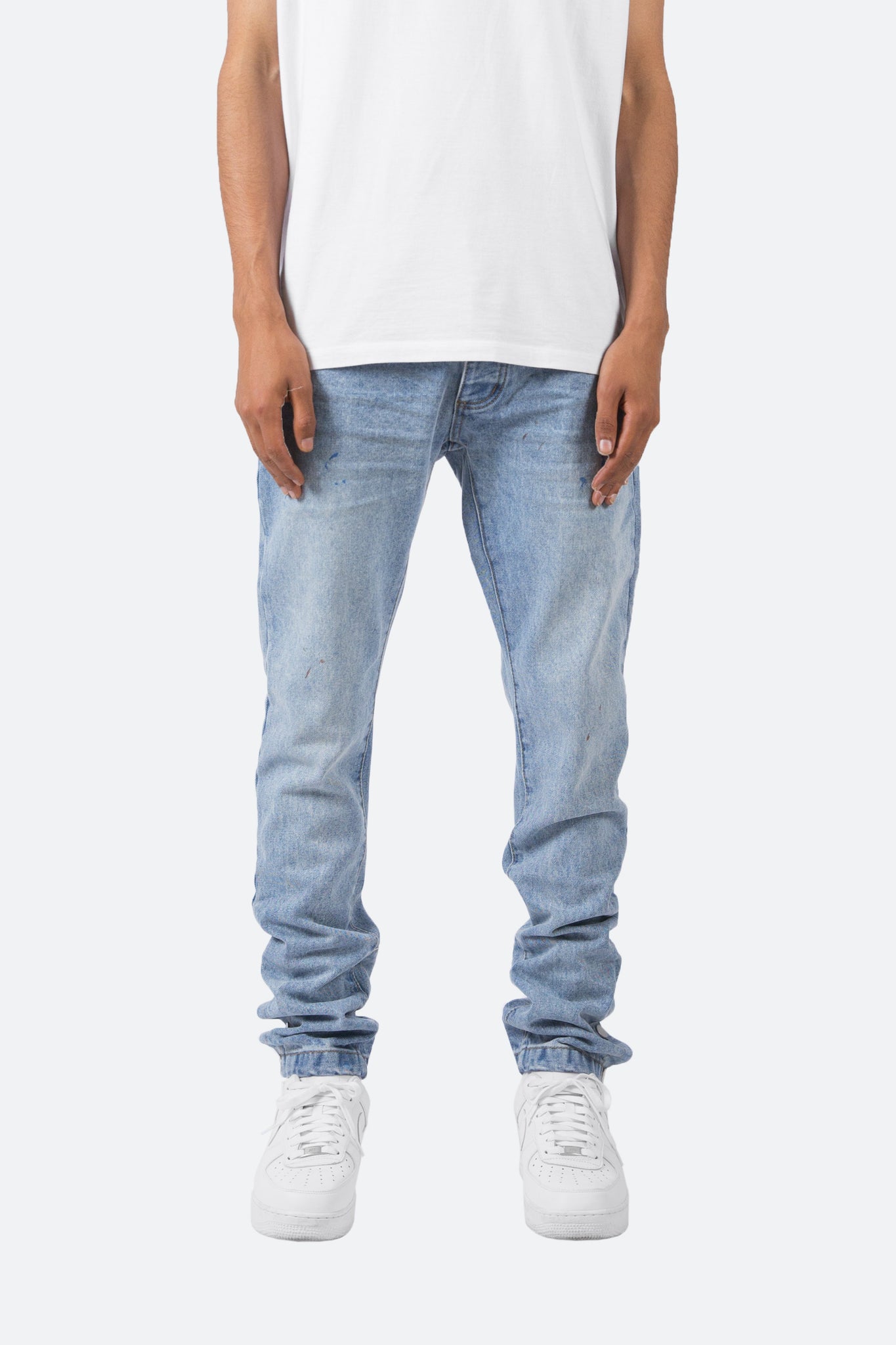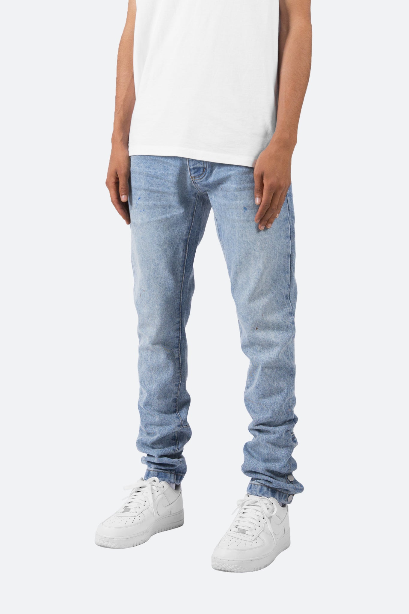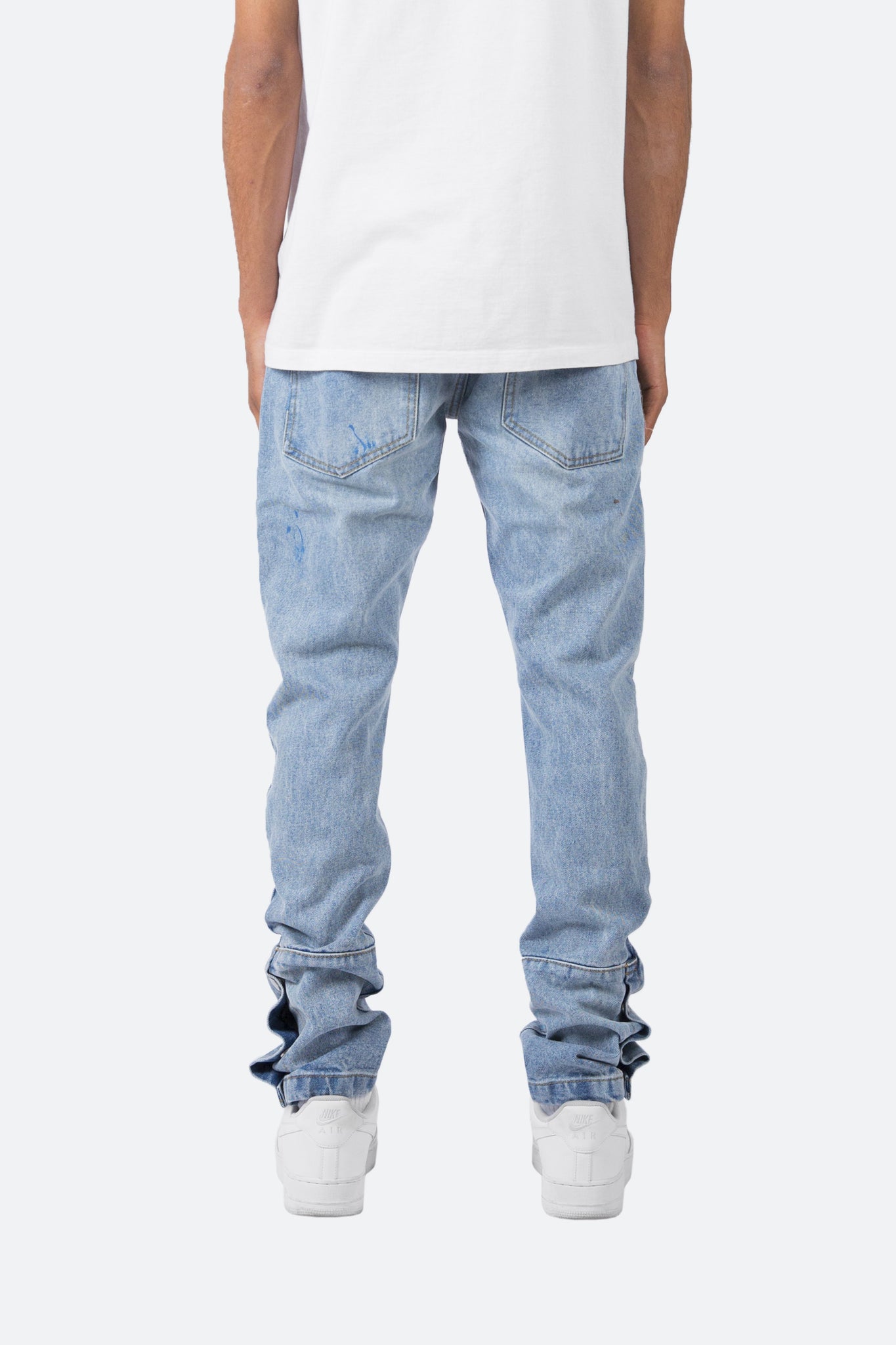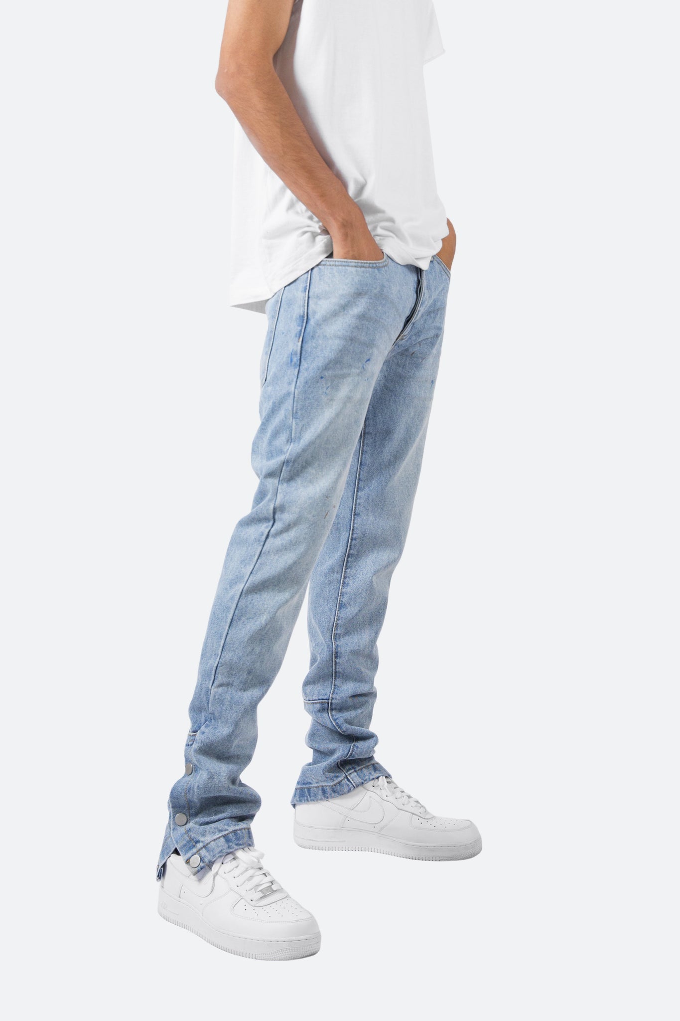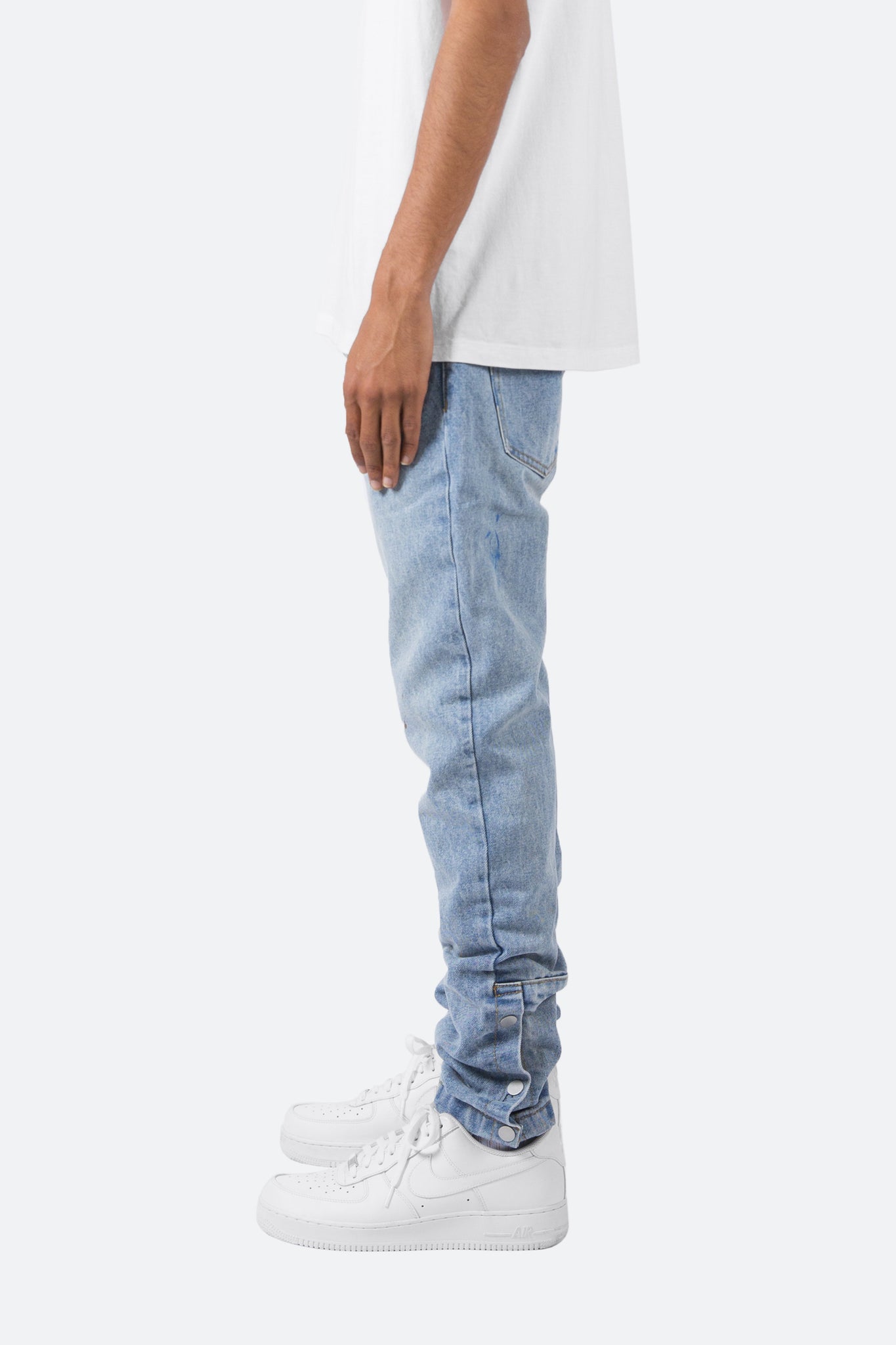 the S2 Snap Denim is designed with our new S fit, which is relaxed through the thigh and a straight leg, featuring a light vintage wash throughout, light paint splatter and is completed with snaps closures at the bottom of the outseam.