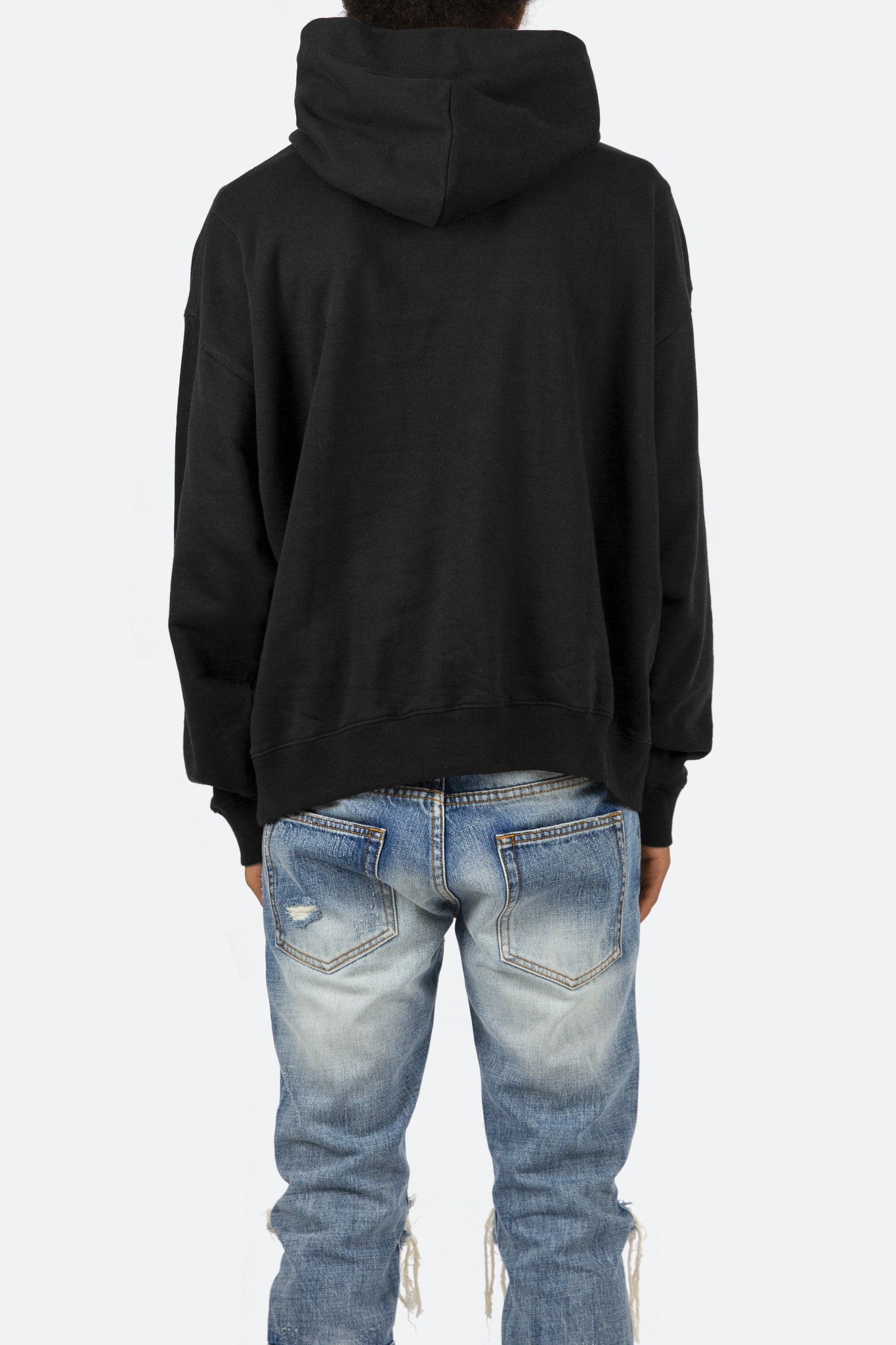 The Essential Henley Hoodie features a relaxed fit with a dropped shoulder design, front pouch pocket, ribbing at the wrists and waist, henley button collar and finished in a washed terry fabric.