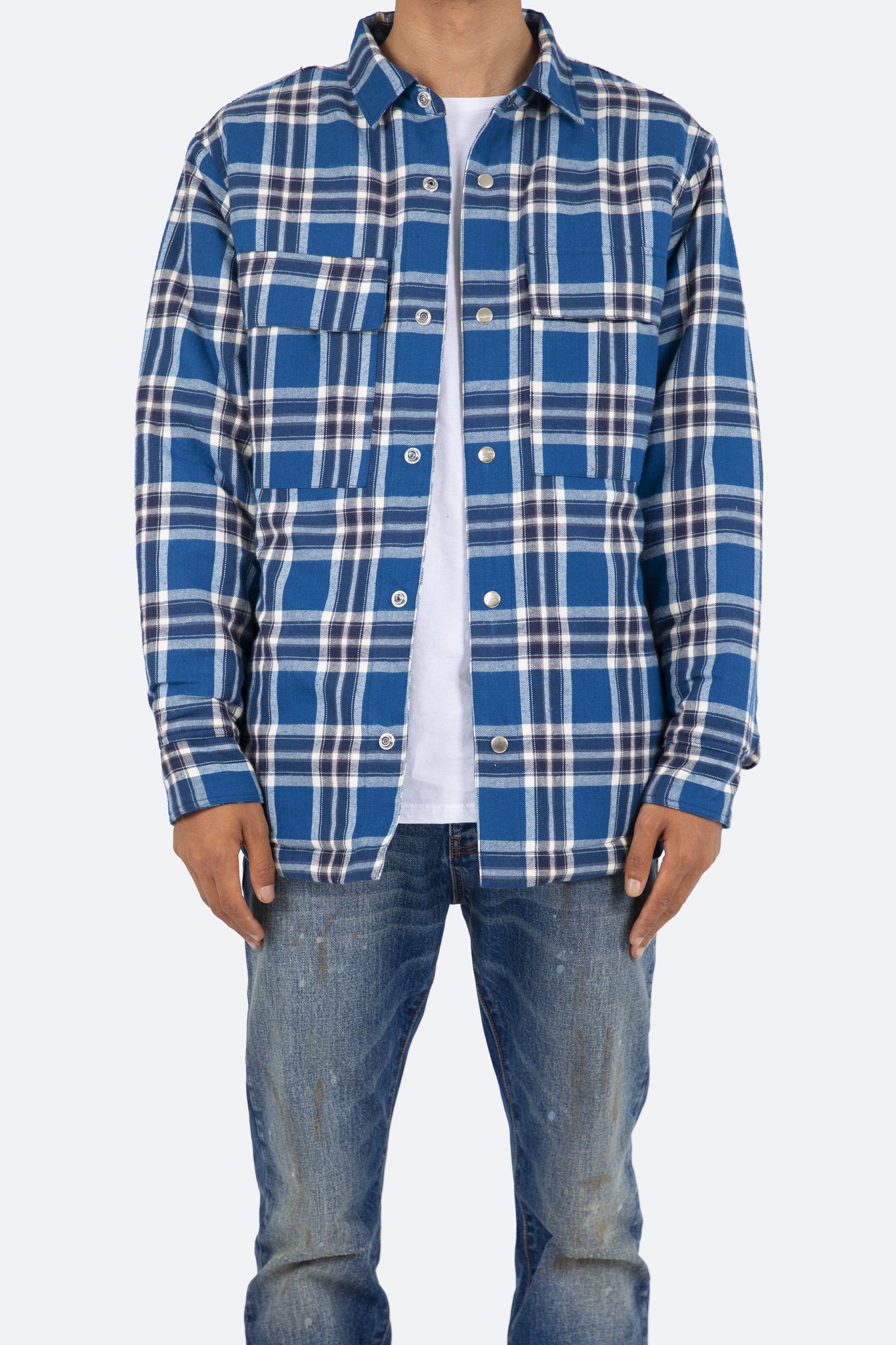 the Plaid Work Jacket is designed with a relaxed fit and features a scoop hemline, pleats at the wrist, an adjustable button closure, and all in a custom plaid shell and quilted poly-filled lining.
