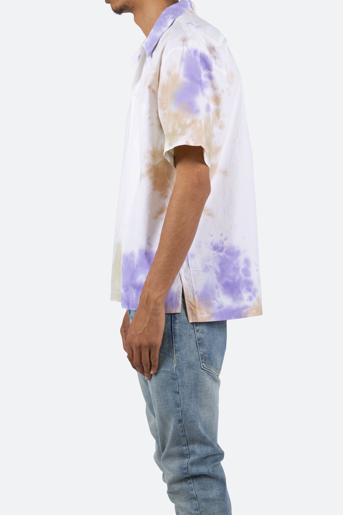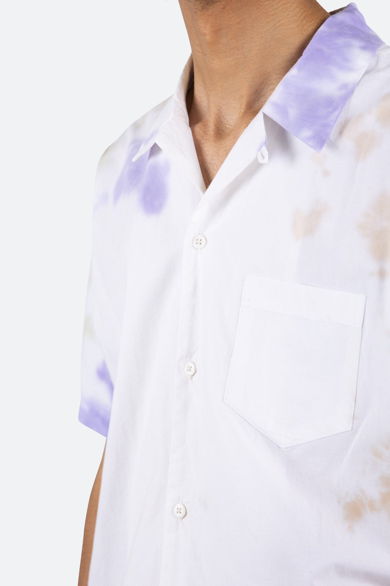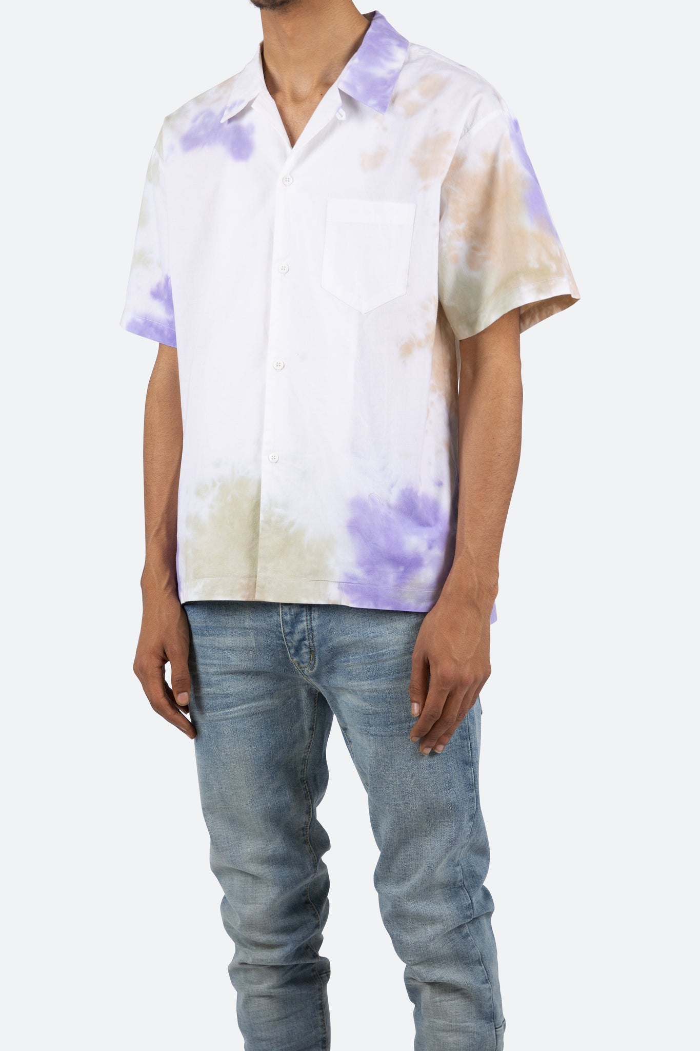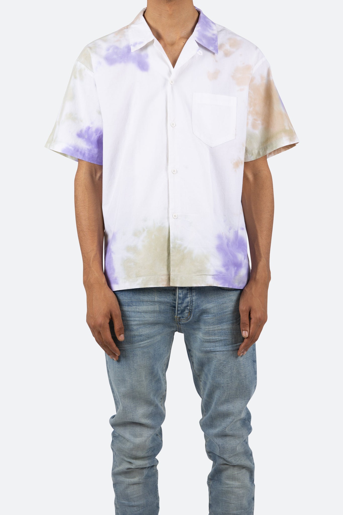 the Cloud Dyed S/S Shirt is designed with a relax fit, and is made from a cotton poplin fabric with a multi color cloud wash, and finished with a silicon wash for a softer hand feel.