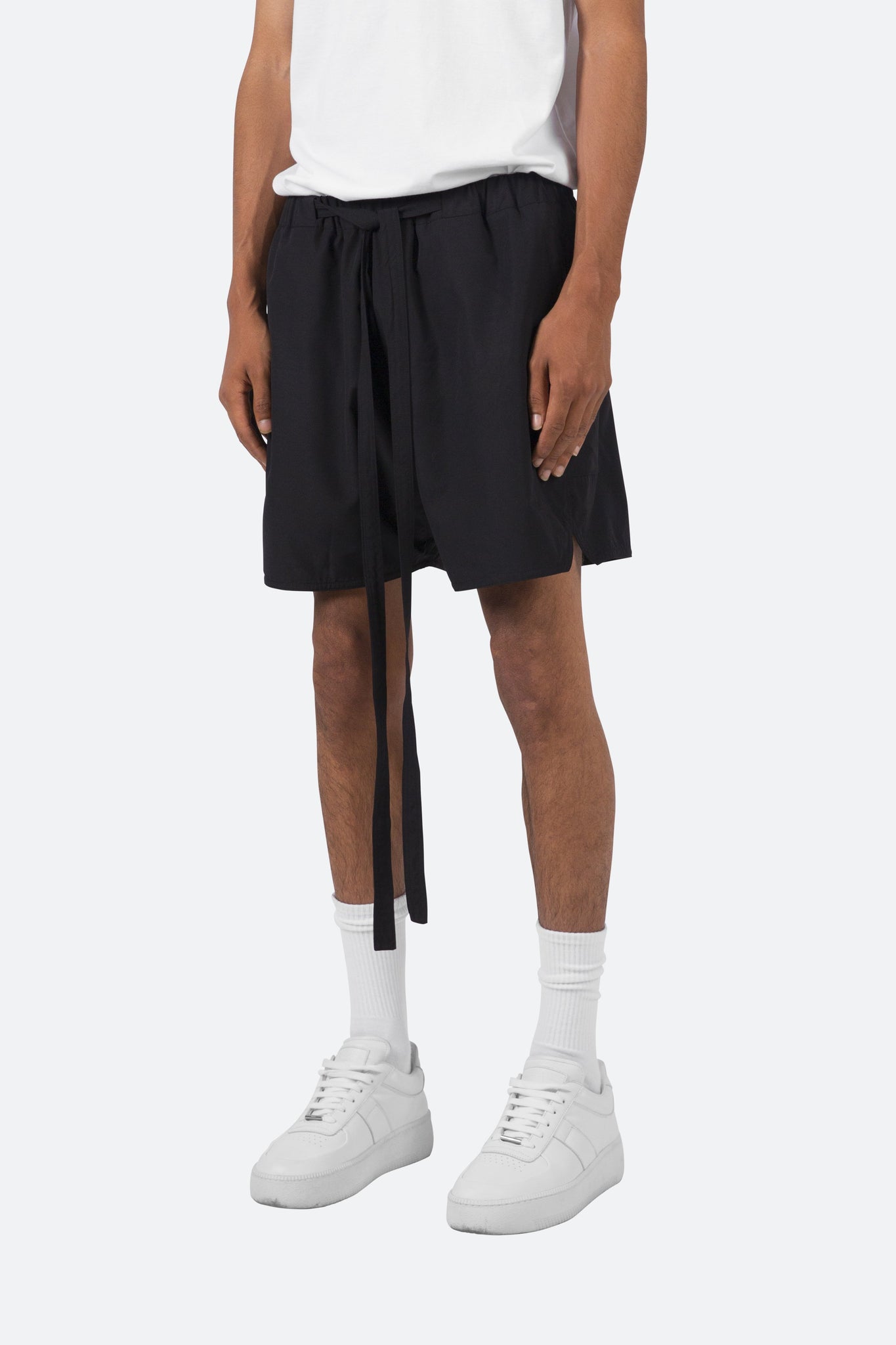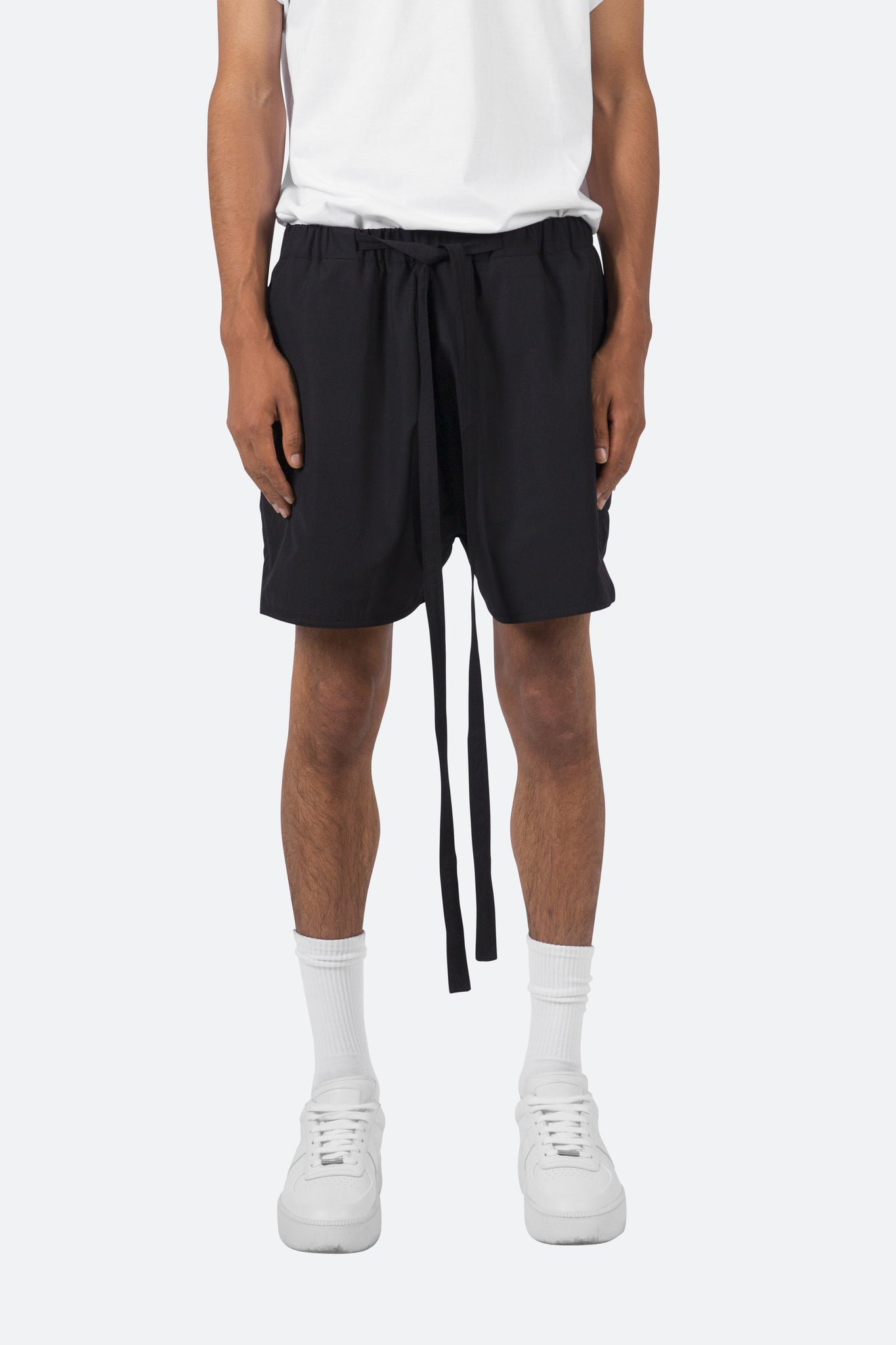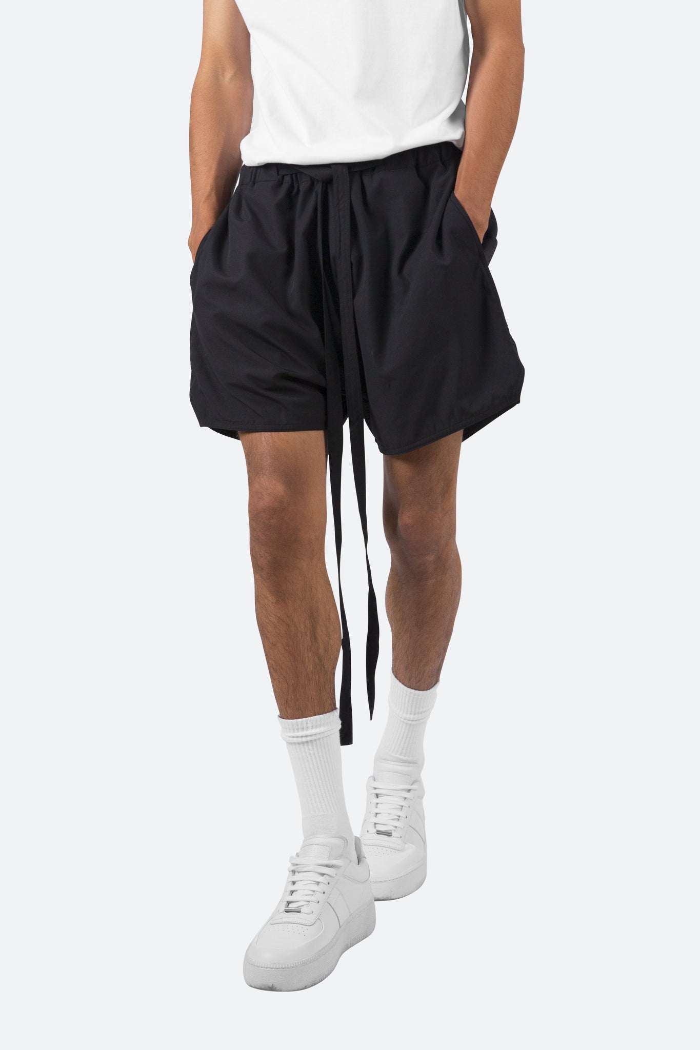 the Nylon Carpenter Shorts are designed in a twill fabric that features welt pockets in the side seams and additional pockets on the back and is finished with a built in extended belt constructed from self fabric.