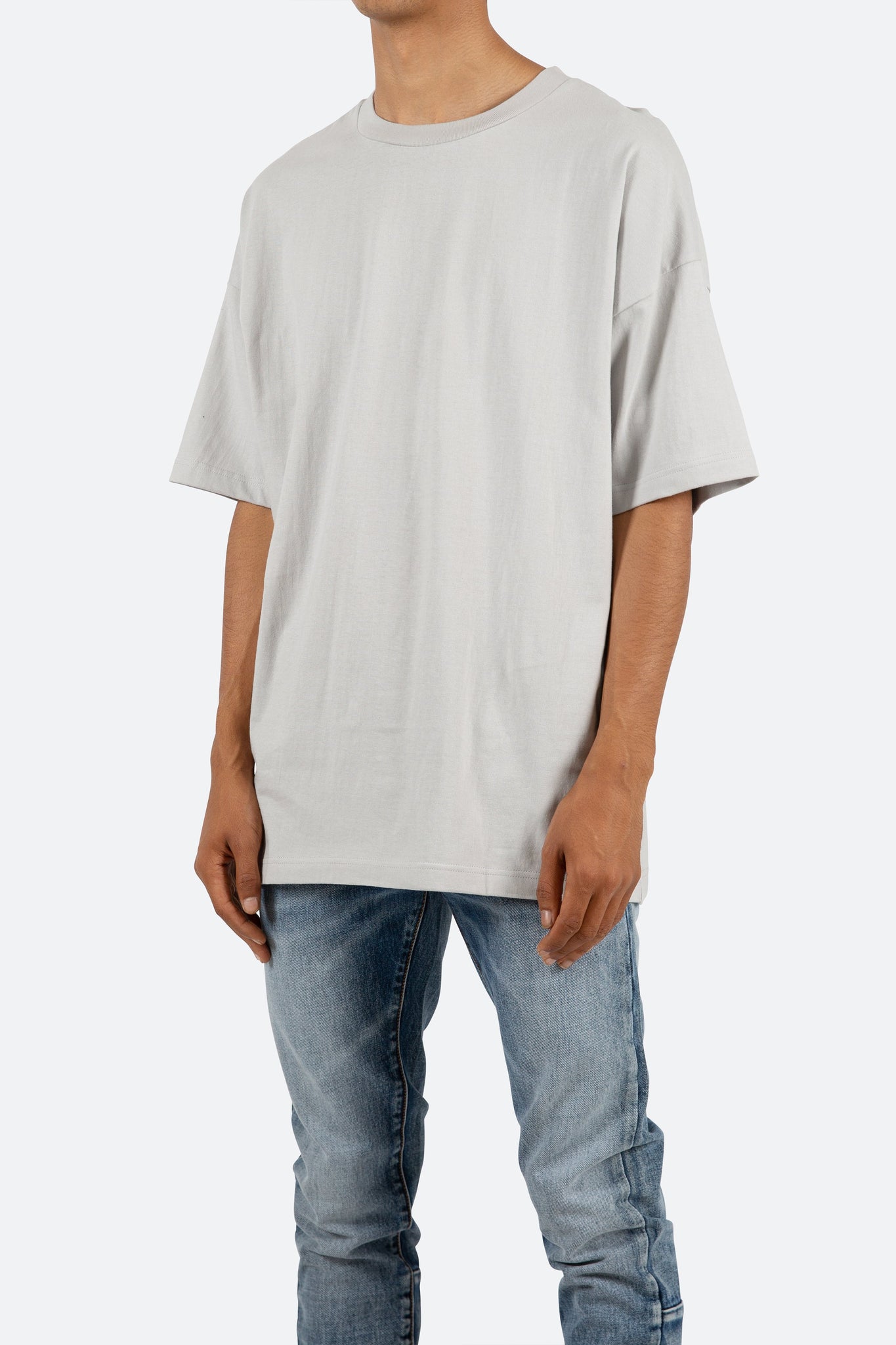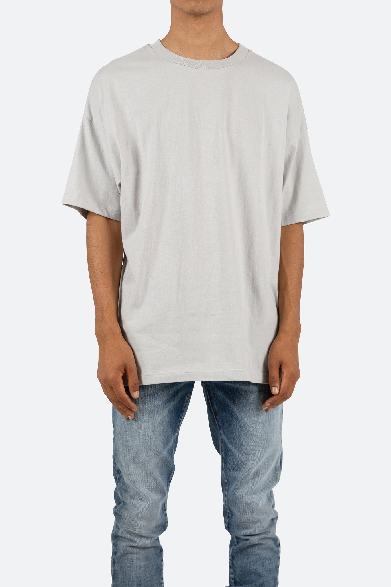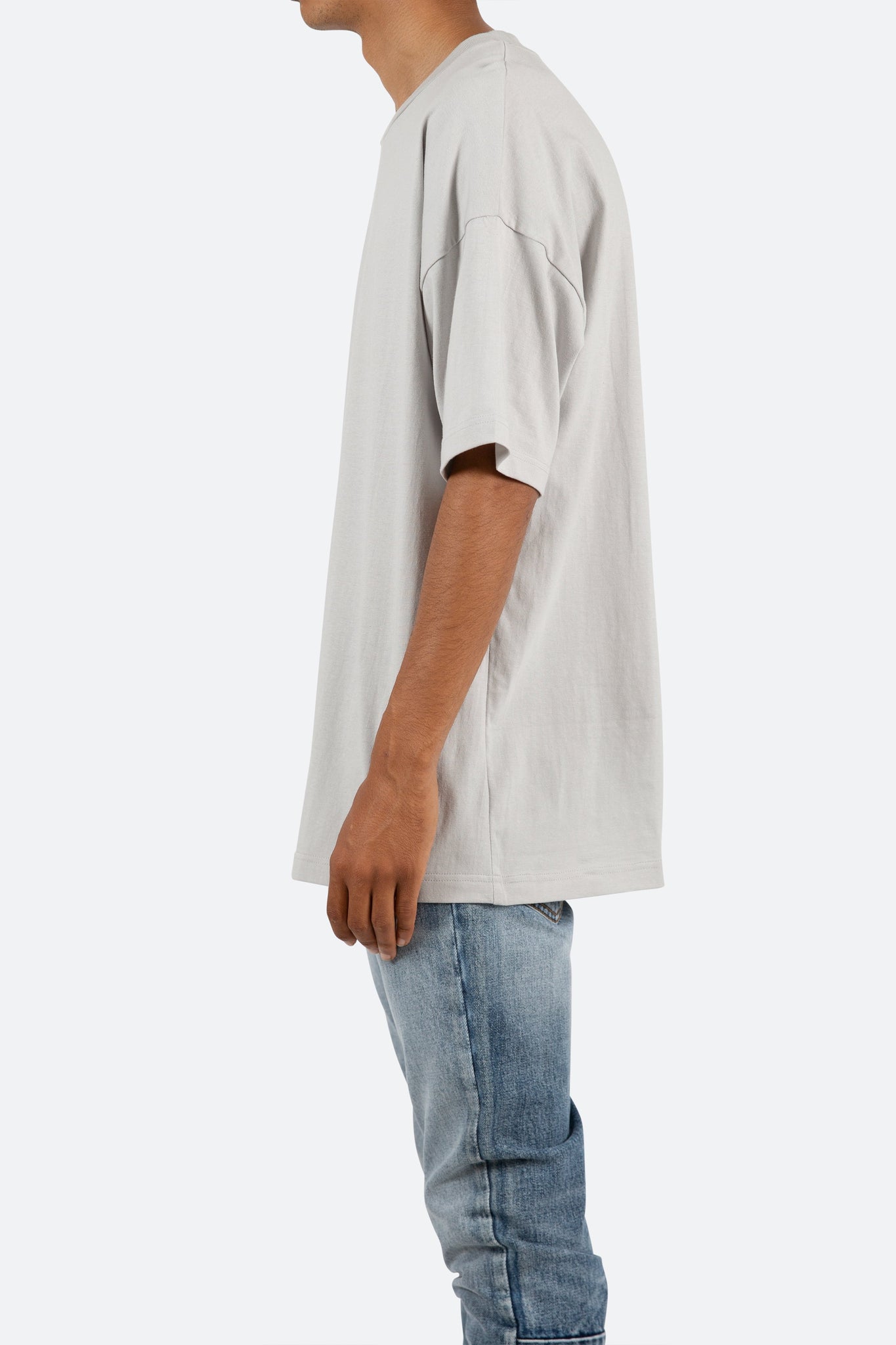 this tee features a flat hem line and an extended shoulder seam for an oversized, dropped shoulder fit.